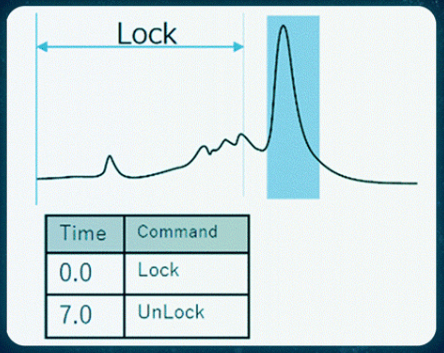 功能: 将目标峰以外的部分设置为锁定区间 (不按照设置的参数执行自动收集 ) ,则不会错误地收集杂质峰
